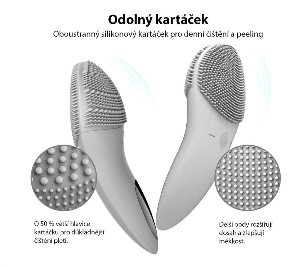 - Oboustrannou čisticí hlavu lze použít pro každodenní čištění a exfoliaci.