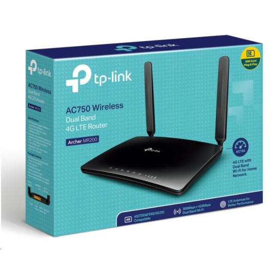TP-Link Archer MR200 OneMesh WiFi5 router (AC750, 4G LTE, 2,4GHz/5GHz, 3x100Mb/s LAN, 1x100Mb/s LAN/WAN, 1xnanoSIM)