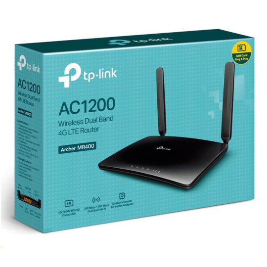 TP-Link Archer MR400 OneMesh WiFi5 router (AC1200, 4G LTE, 2,4GHz/5GHz, 3x100Mb/s LAN, 1x100Mb/s LAN/WAN, 1xmicroSIM)