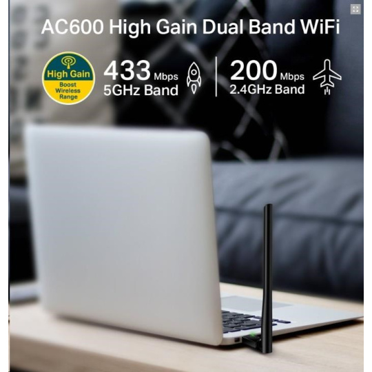 TP-Link Archer T2U Plus WiFi5 USB adapter (AC600,2,4GHz/5GHz,USB2.0)