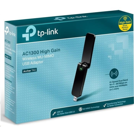 | Package Contents | AC1300 High Gain Wireless MU-MIMO USB Adapter Archer T4U Quick Installation Guide Resource CD |