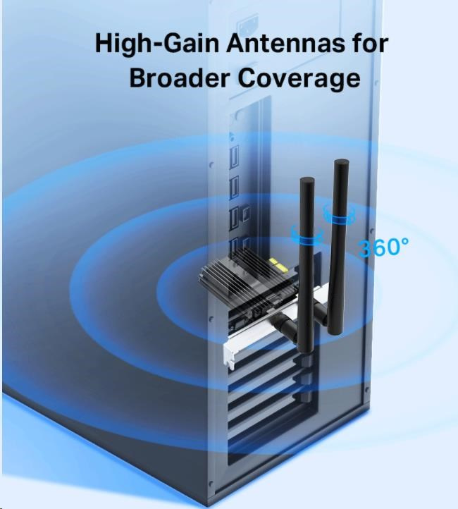 | Package Contents | Archer TX50E Two 5 dBi High-Gain Antennas Low-Profile Bracket Bluetooth Header Cable Quick Installation Guide Resource CD |