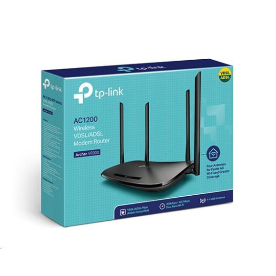 TP-Link Archer VR300 WiFi5 VSDSL/ADSL router (AC1200, 2,4GHz/5GHz, 3x100Mb/s LAN, 1x100Mb/s LAN/WAN, 1xRJ11)
