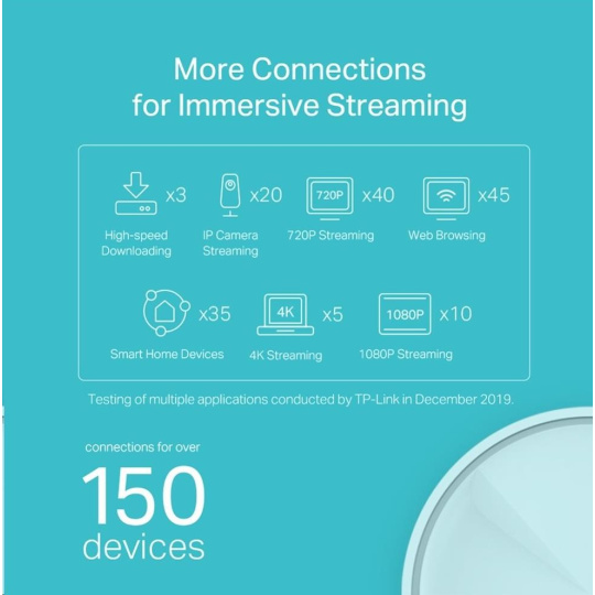- Absolutní bezpečnost: Šifrování WPA3 a TP-Link HomeCareTM poskytují přizpůsobené funkce, včetně rodičovských kontrol, antivirů a kvality služeb (QoS), aby byl zajištěn bezpečnější online provoz.