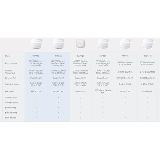 | Package Contents | 300Mbps Wireless N Ceiling Mount Access Point EAP110 Passive PoE Adapter, Power Cord, Mounting Kits, Installation Guide |