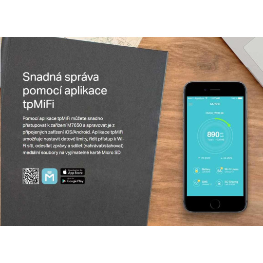 TP-Link M7650 přenosný WiFi5 router (AC1200, 4G LTE Cat11,2,4GHz/5GHz, 1xmicroUSB,1xmicroSIM,1xmicroSD)