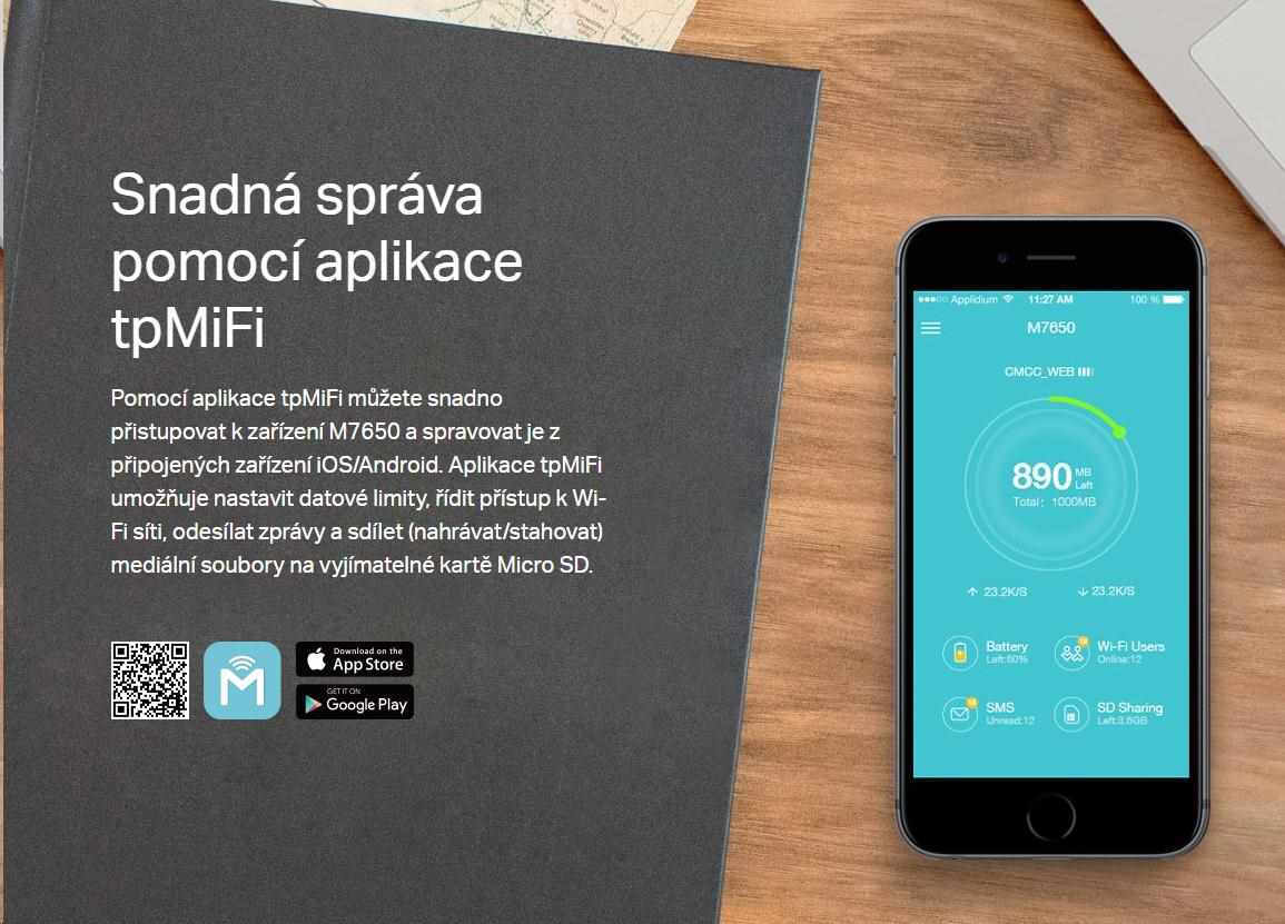 TP-Link M7650 přenosný WiFi5 router (AC1200, 4G LTE Cat11,2,4GHz/5GHz, 1xmicroUSB,1xmicroSIM,1xmicroSD)