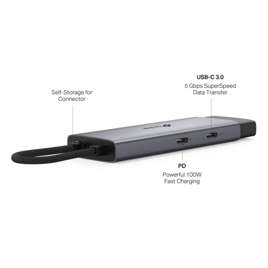 - 5v1 USB-C Hub: UH5020C promění jeden USB-C port na 5 portů s 4K@60Hz HDMI, 100W Power Delivery, 1× USB-C datový port, 2× USB-A datové porty.