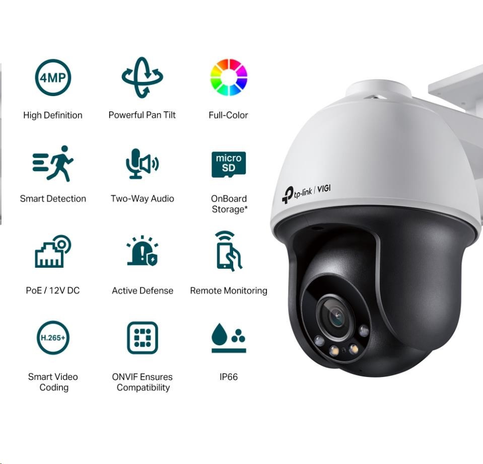 TP-Link VIGI C540(4mm), 4MP, PTZ, PoE, IR 30m, Micro SD card