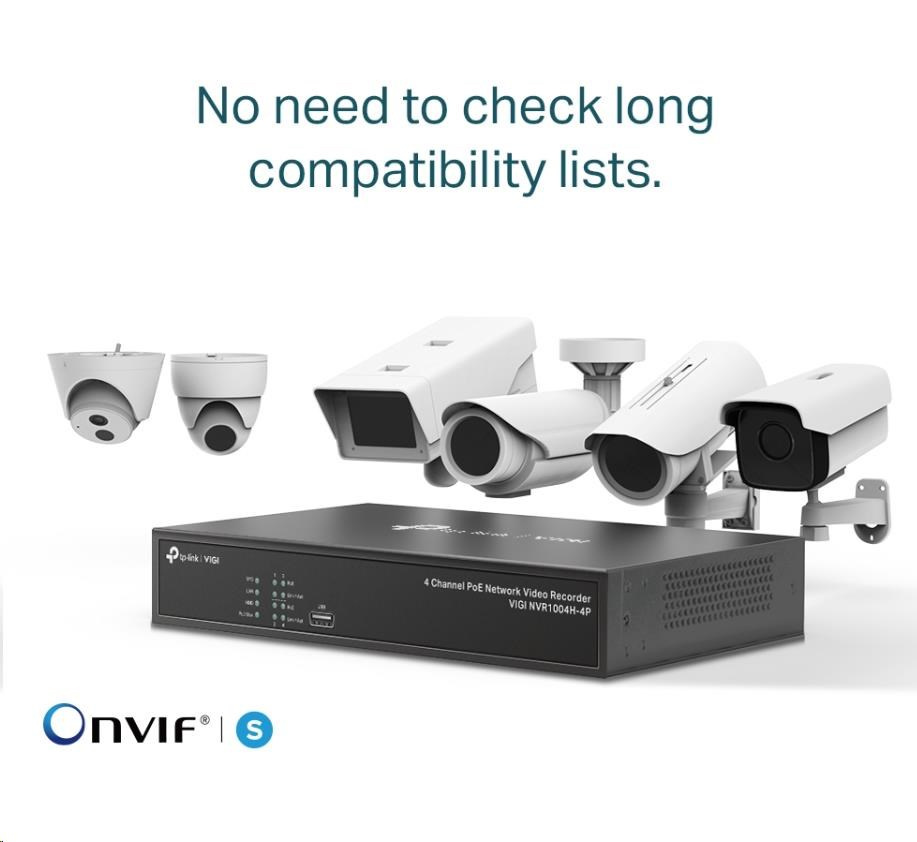 - ONVIF zajišťuje kompatibilitu - Snadno přidejte IP kamery od VIGI a dalších značek a vytvořte výkonnou a rozmanitou síť díky bezbariérové kompatibilitě.