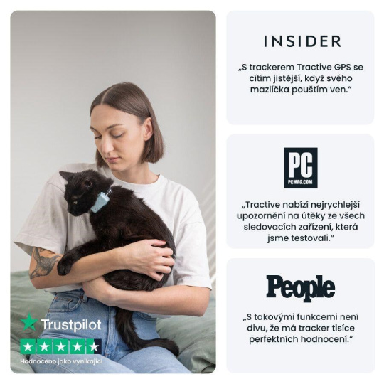 Tractive CAT Mini nejlepší GPS tracker kočky, který vašemu kočičímu příteli zajistí bezpečí. Budete dostávat okamžitá upozornění, když uteče, objevíte jeho území díky Historii polohy a můžete ho sledovat v reálném čase.Také můžete sledovat úroveň jeho spánku a aktivity, dostávat zdravotní upozornění a sledovat denní Skóre kondice. S GPS pro kočky rovněž zdarma dostanete bezpečnostní obojek Rogz a dvě různé spony pro upevnění.