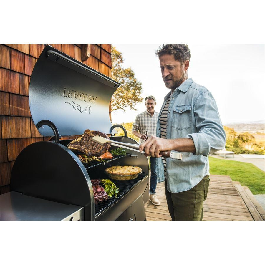 Vlastnosti grilu Traeger zahrnují všestranný teplotní rozsah od 165 °F do 500 °F, ideální pro uzení, pečení, grilování i BBQ, s rychlým zahřátím a konzistentní regulací teploty díky napětí 120 V AC a výkonu 95 W. Díky WiFIRE® připojení a integrovanému senzoru pelet můžete sledovat vaření a hladinu pelet odkudkoli pomocí aplikace Traeger. Nabízí velkou varnou plochu 1651 cm2 na dvou řadách porcelánem potažených ocelových roštů a je navržen s izolovanou konstrukcí s dvojitou stěnou pro snížení kolísání teploty. Součástí je i sonda na maso Traeger pro snadnou kontrolu vnitřní teploty, funkce Super Smoke pro vylepšenou chuť dřevěného uzení a pohodlné čištění zásobníku pro rychlou výměnu pelet. Gril se připojuje k elektrické síti pomocí přiloženého 6ft. D2 NEMA napájecího kabelu.