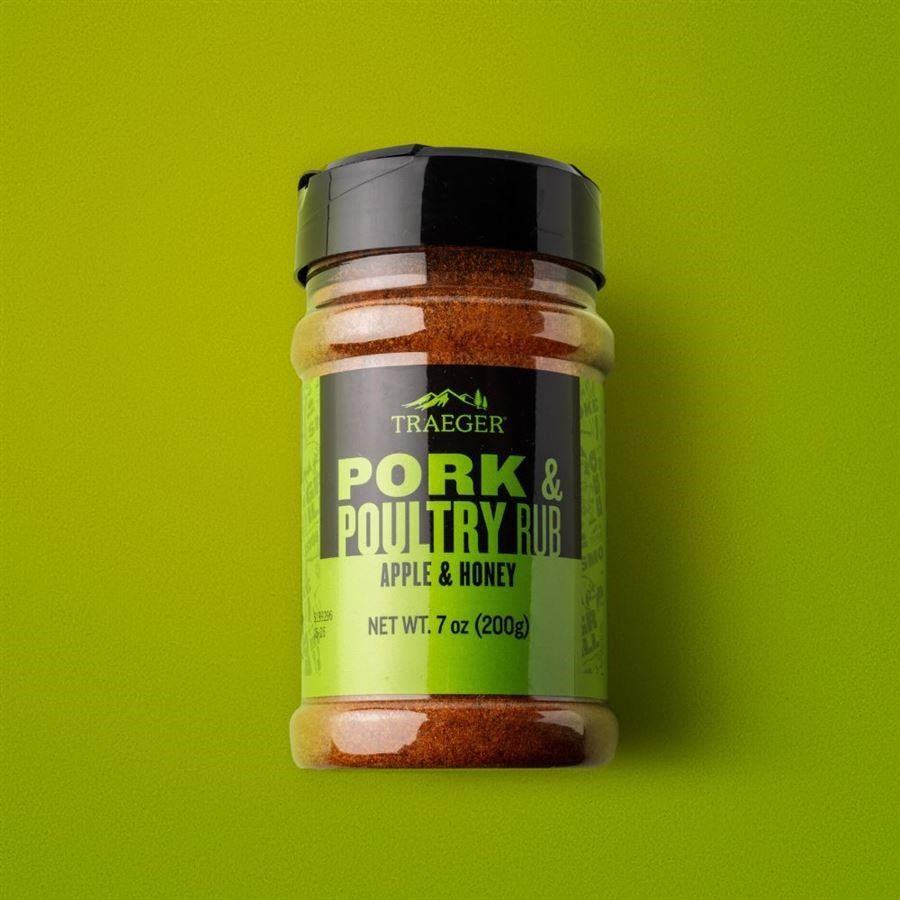 Od vepřových kotlet až po kuře na rožni – dodávejte všem druhům bílého masa extra dávku chuti s kořením Traeger Pork & Poultry Rub. Paprika, cibule a chilli papričky dodávají pikantní chuť, zatímco jablko a med přidávají nádech sladkosti, který se perfektně hodí k vepřovému, kuřecímu a jiným jemnějším druhům masa.