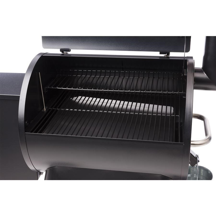 Tento elektrický gril na dřevěné pelety nabízí všestranný teplotní rozsah od nízkého nastavení pro pomalé "kouření" až po 450 °F, což umožňuje širokou škálu přípravy pokrmů včetně uzení, pečení a opékání. Je vybaven dvěma řadami porcelánem potažených ocelových roštů, které poskytují 572 čtverečních palců varné plochy a snadno se čistí. Pro optimální funkčnost a snadné použití je gril vybaven zásobníkem na pelety s kapacitou 18 liber a pohodlnou čisticí zásuvkou, která umožňuje rychlou výměnu příchutí pelet. Rychlé zahřátí a konzistentní regulaci teploty zajišťuje napájení 120 V AC a výkon 250 W. Pro zprovoznění stačí připojit přiložený 6stopý napájecí kabel AC do nejbližší zásuvky. Součástí balení je také jedna sonda na maso Traeger, která usnadňuje monitorování vnitřní teploty masa. Je důležité poznamenat, že tento model není vybaven připojením WiFIRE®.