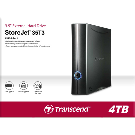 TRANSCEND externí HDD USB 3.0 StoreJet 35T3, 4TB, Black, Turbo