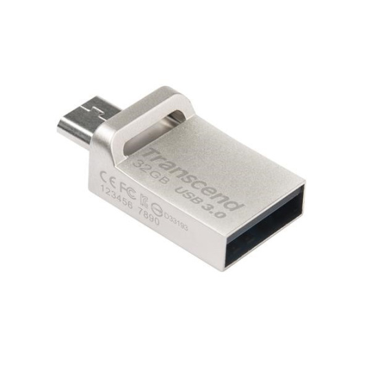 TRANSCEND Flash Disk 32GB JetFlash®880S, USB 3.0/micro USB (R:90/W:20 MB/s) stříbrná