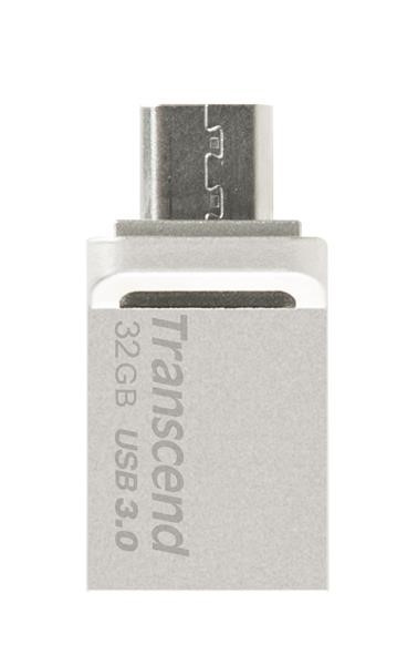 TRANSCEND Flash Disk 32GB JetFlash®880S, USB 3.0/micro USB (R:90/W:20 MB/s) stříbrná