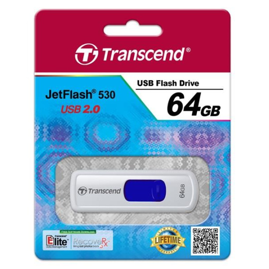 TRANSCEND Flash Disk 64GB JetFlash®530, USB 2.0 (R:16/W:6 MB/s) bílá/modrá Royal