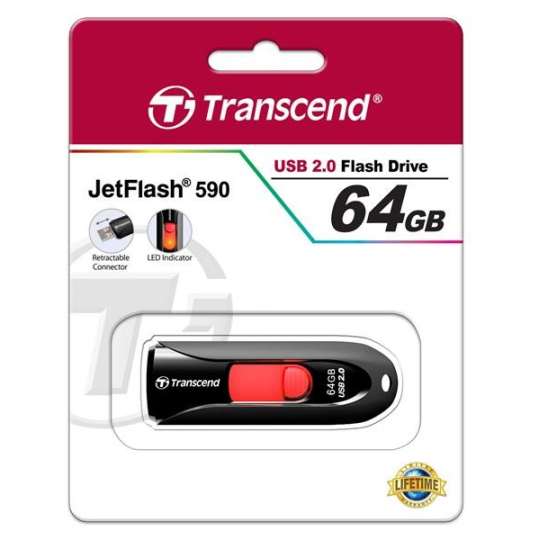 TRANSCEND Flash Disk 64GB JetFlash®590K, USB 2.0 (R:16/W:6 MB/s) černá