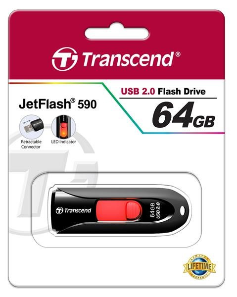 TRANSCEND Flash Disk 64GB JetFlash®590K, USB 2.0 (R:16/W:6 MB/s) černá