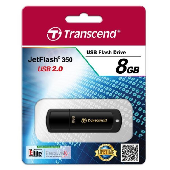 TRANSCEND Flash Disk 8GB JetFlash®350, USB 2.0 (R:13/W:4 MB/s) černá