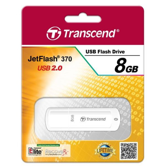 TRANSCEND Flash Disk 8GB JetFlash®370, USB 2.0 (R:13/W:4 MB/s) bílá