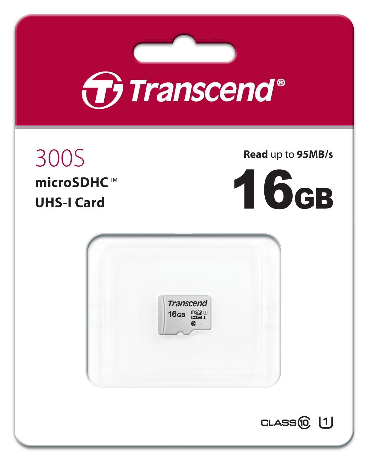 TRANSCEND MicroSDHC karta 16GB 300S, UHS-I U1 + adaptér