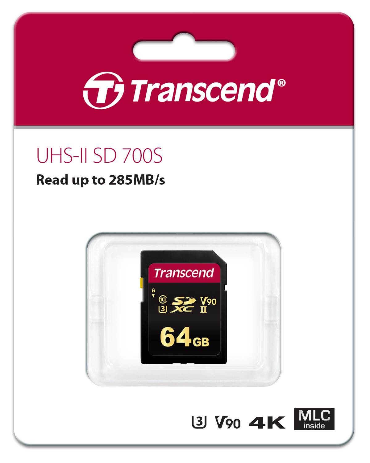 Transcend's SDXC/SDHC 700S memory cards meet both the UHS-II Speed Class 3 (U3) and the UHS Video Speed Class 90 (V90) standards for 4K Ultra HD video recordings, with read/write speeds of up to 285MB/s and 180MB/s respectively.