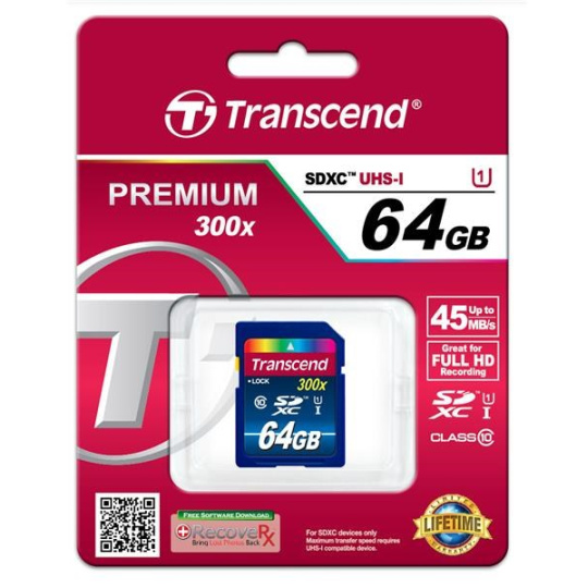 TRANSCEND SDXC karta 64GB Premium, Class 10 UHS-I 300x
