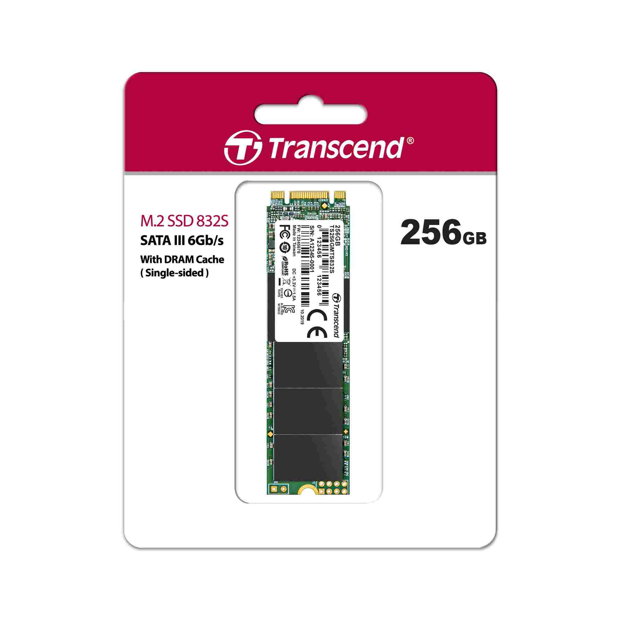 TRANSCEND SSD MTS832S, Single Side, 256GB, M.2 2280, SATA B+M Key, TLC