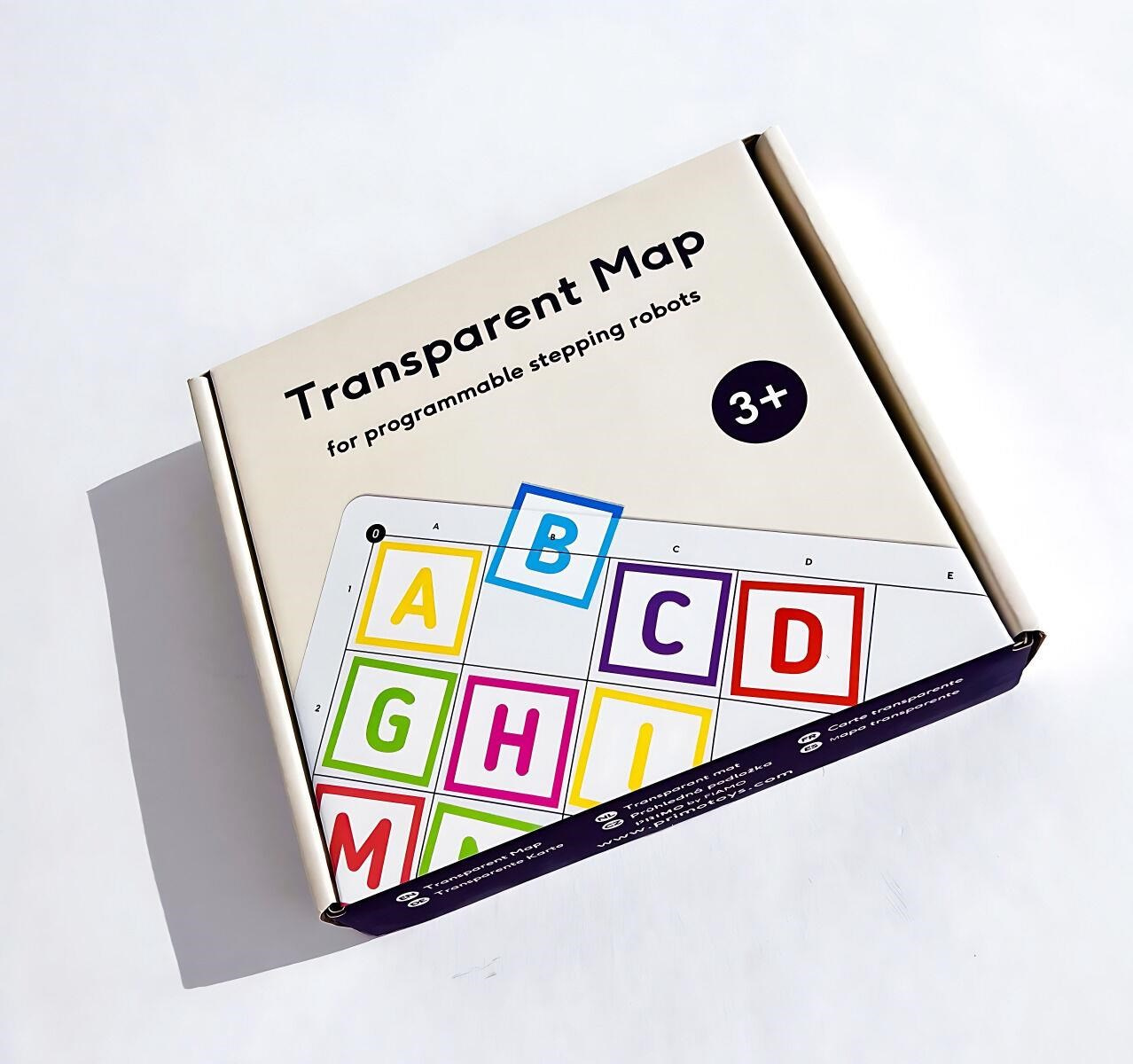 Transparentní podložka pro krokové roboty (Cubetto, Bee-Bot & Blue-Bot a další) s kapsami, do kterých lze vkládat kartičky s různými tématy. Učitelé nebo děti si tak mohou vymýšlet vlastní příběhy a úkoly, které budou odpovídat jejich potřebám a znalostem.
