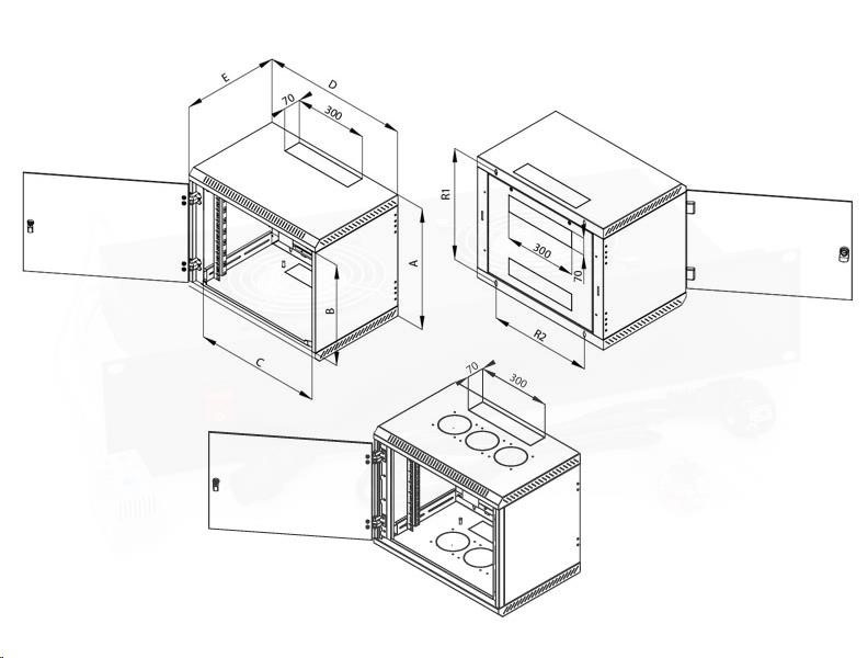 TRITON 19" jednodílný rozvaděč 18U/400mm, 6 otvorů pro ventilátory.