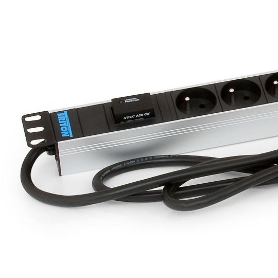 TRITON 19" rozvodný panel 24x230V zásuvka, 2m kabel,16A IEC60309, černý