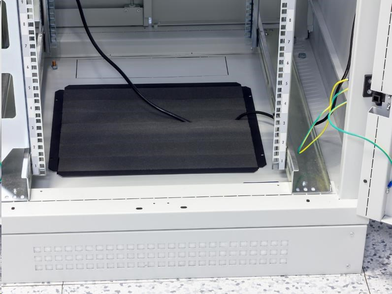 Kabelová průchodka šedá s molitanovou výplní. Je určena do montážních otvorů pro ventilační jednotky, stojanových rozvaděčů Tritón nebo přímo do zdvojených podlah datových center, po vyříznutí montážního otvoru 350 x 420 mm..