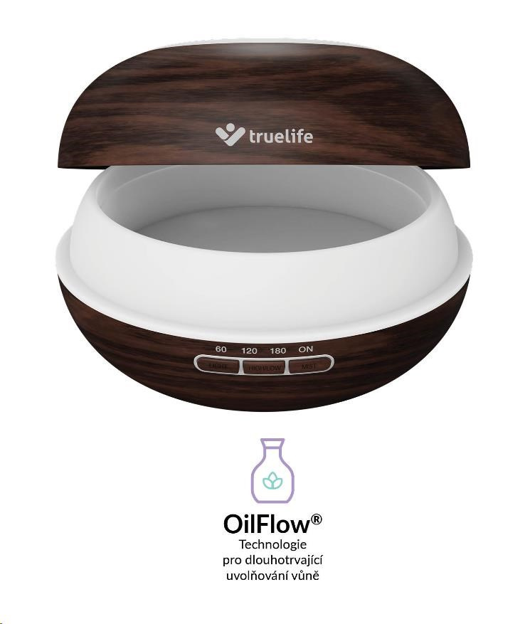 Stačí stisknutí jediného tlačítka a aroma difuzér Truelife provoní vzduch v místnosti vaší oblíbenou vůní. Vytvoří vám příjemnou atmosféru pro relaxaci, cvičení jógy nebo meditaci. Stačí do nádržky s vodou přidat pár kapek vašeho oblíbeného esenciálního oleje a OilFlow® technologie se postará o zbytek. Difuzér eliminuje okolní pachy a provoní vzduch v místnosti vaší oblíbenou vůní. Využijete ho i jako zvlhčovač vzduchu. Funguje na principu ultrazvuku, vodu v nádrži mění na jemnou páru, která se mísí se vzduchem v místnosti a téměř okamžitě jej zvlhčuje na optimální hodnotu.