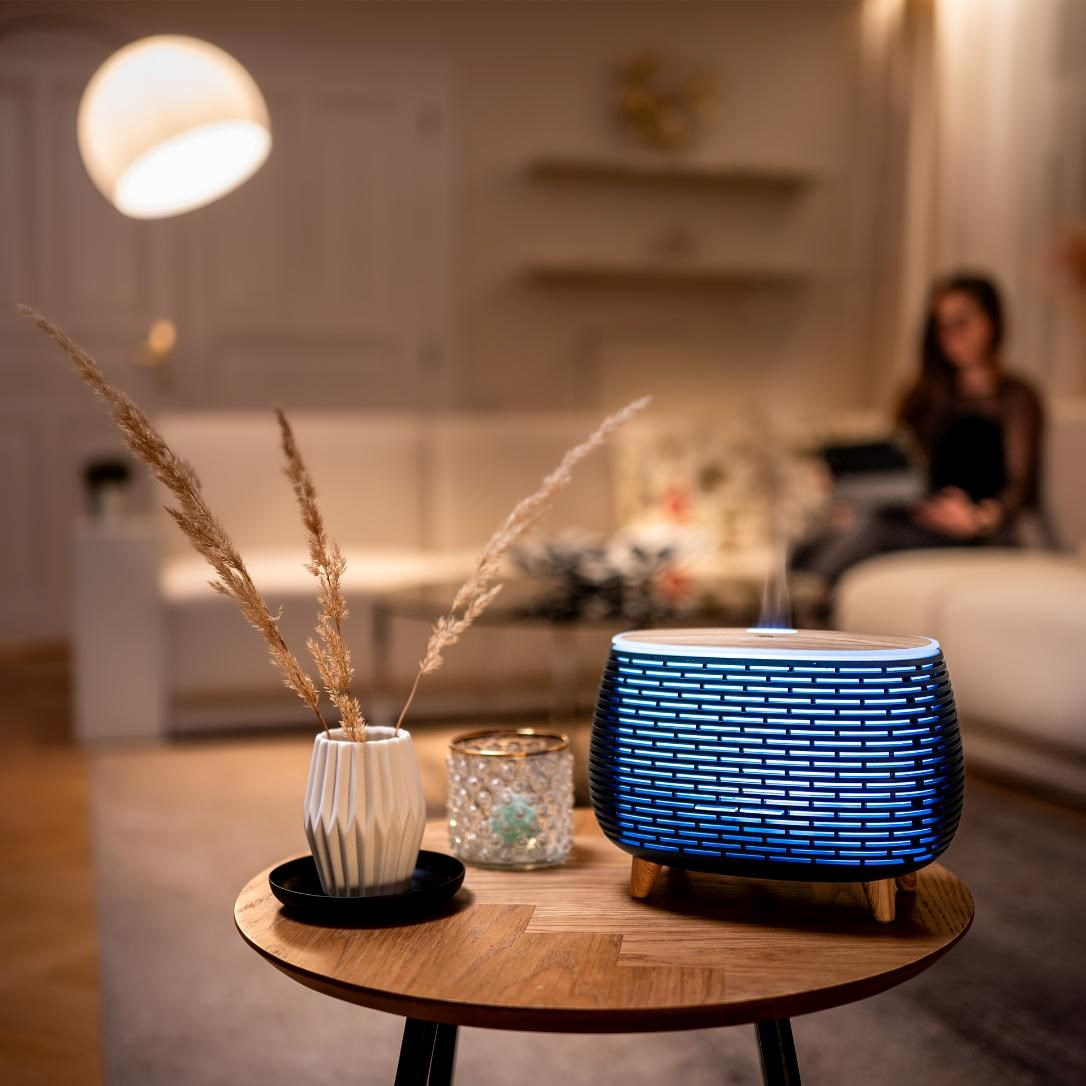 Naše zdraví a celkovou pohodu velmi ovlivňuje kvalita vzduchu, který dýcháme. Zlepšit jej může pravidelné větrání, čističky vzduchu, pokojové rostliny, ale také difuzéry. Esenciální oleje používané do difuzérů pomáhají navodit klid, uvolnit mys, zlepšit dýchání. Aromaterapie je skvělým pomocníkem pro prevenci onemocnění a celkovou péči o tělo a duši. Používání difuzérů spolu s pravidelným úklidem slouží rovněž jako prevence zápachů.