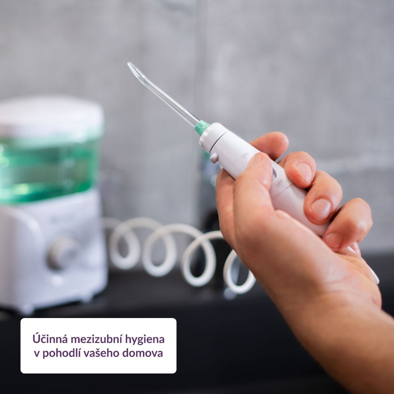 Hlavice trysky je otočná o 360 stupňů, takže snadno vyčistí všechna zákoutí vašich úst.