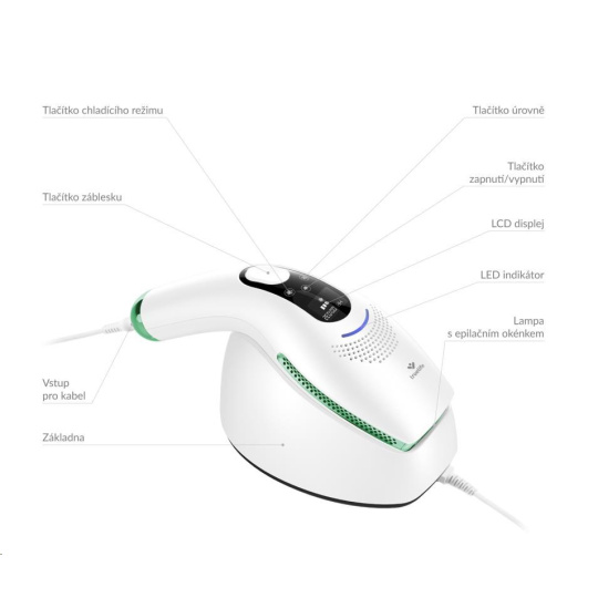 Epilátor má zabudovaný bezpečnostní senzor, který brání vyslání záblesku do volného prostoru. Záblesk se vydá pouze ve chvíli, kdy je v přímém kontaktu s pokožkou.