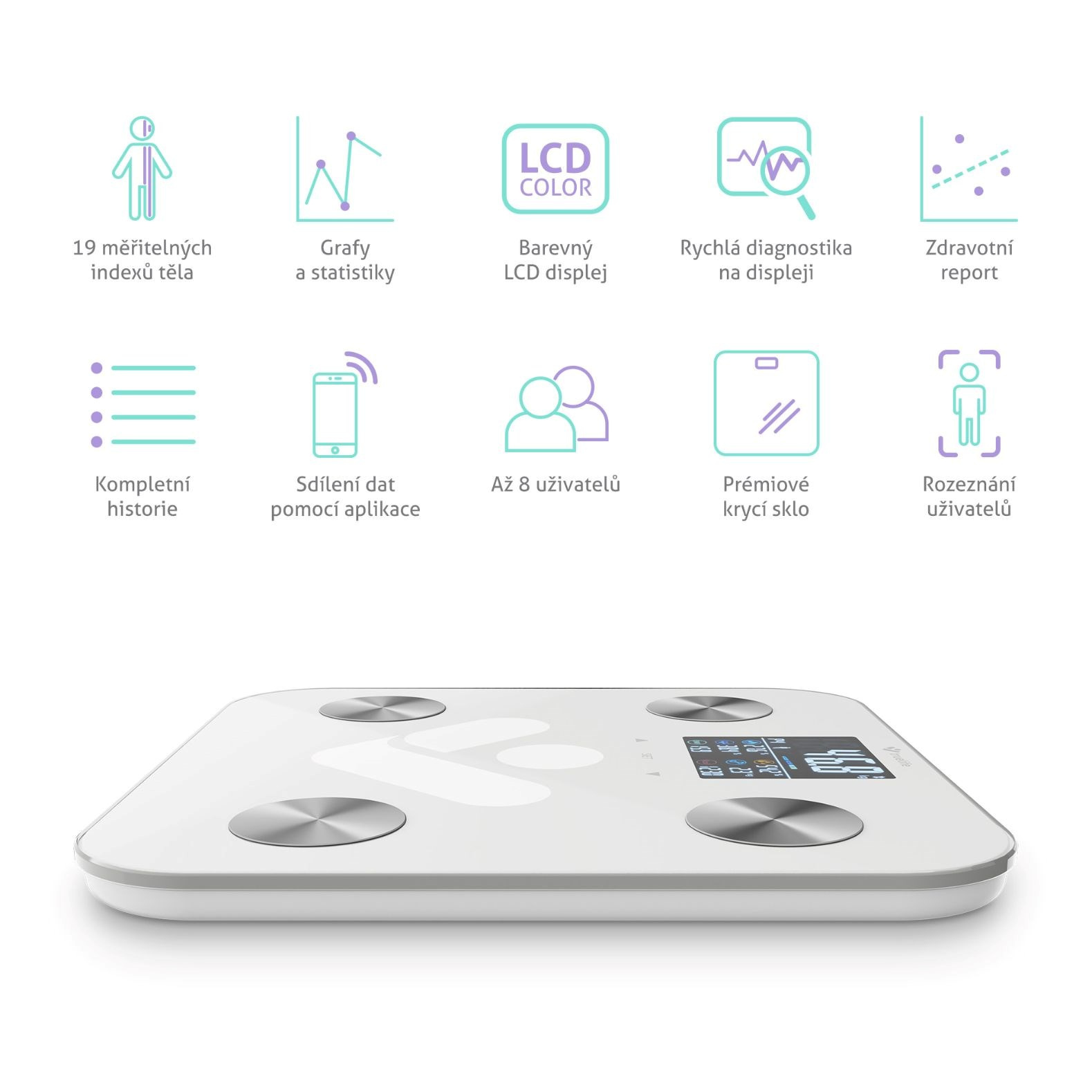 Své tělo nyní budete znát do detailu, váha kromě hmotnosti vypočítá v aplikaci také 19 tělesných indexů jako třeba poměr vody a tuků v těle.