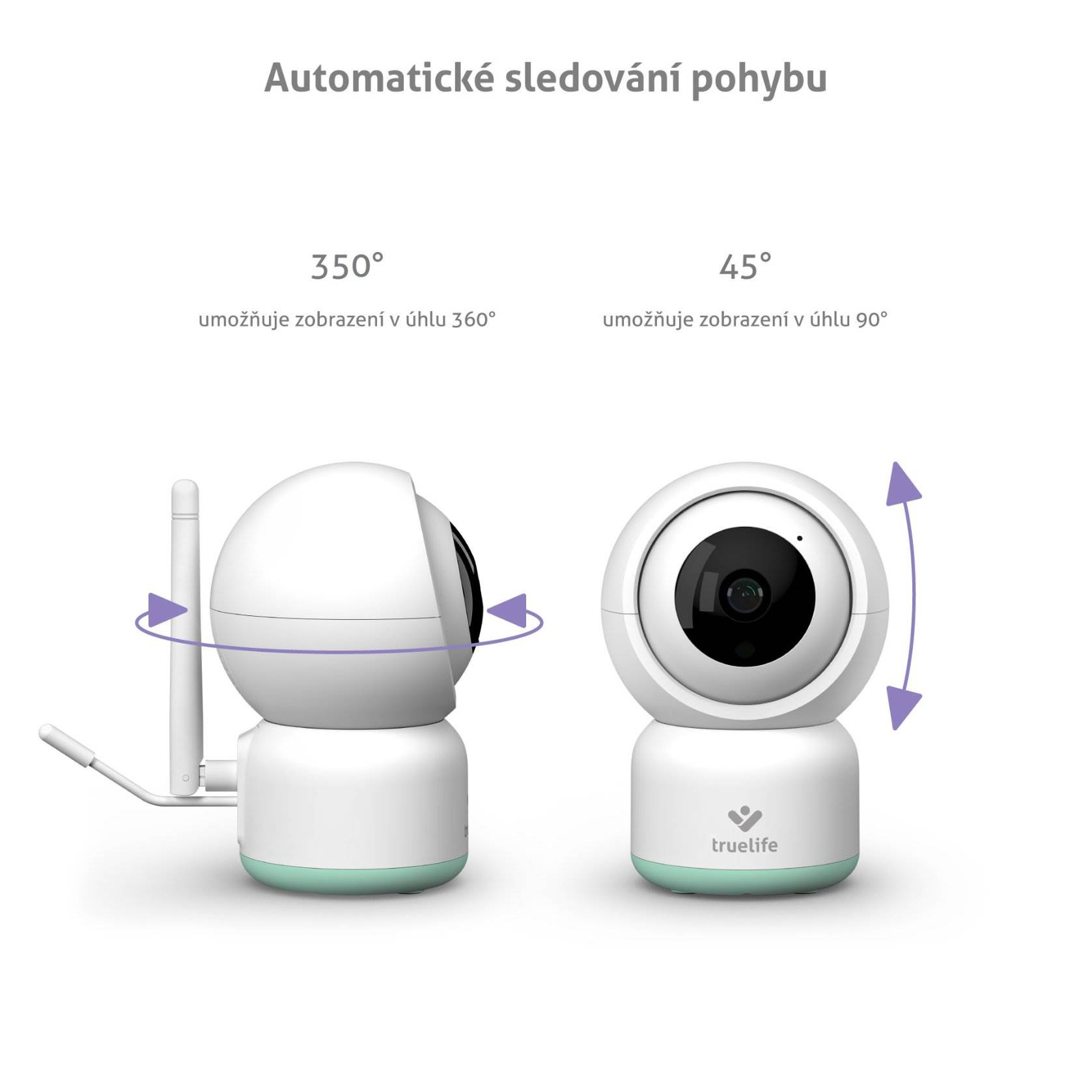 Rotační chůvička disponuje schopností zachytit pohyb a otáčet se za ním. Tuto funkci můžete například využít pro starší děti či domácí mazlíčky.