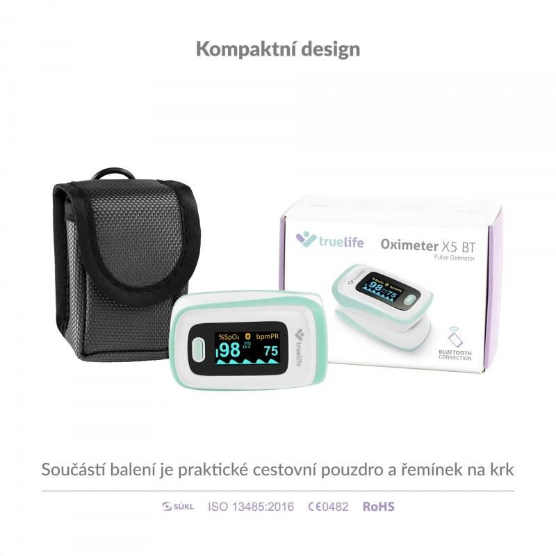 Oxymetr TrueLife X5 zajistí okamžité a přesné měření saturace krevního hemoglobinu kyslíkem a tepové frekvence. Naměřené hodnoty okamžitě a přehledně zobrazí na vestavěném displeji. Je vhodný zejména pro pacienty s respiračním onemocněním nebo onemocněním srdce, ale i pro vrcholové sportovce. Své uplatnění ale nalezne v lékárničce každé domácnosti.
