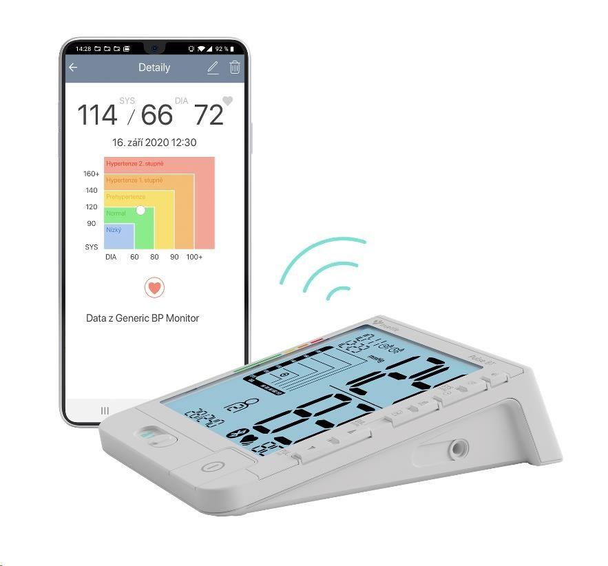 Tlakoměr snadno spárujete s telefonem, kde můžete hodnoty měření uchovávat a dále s nimi pracovat.