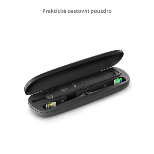 Kartáček je kompaktní a vejde se vám do běžné hygieny. Stojánek s nabíječkou rovněž snadno sbalíte a vezmete kamkoliv s sebou.