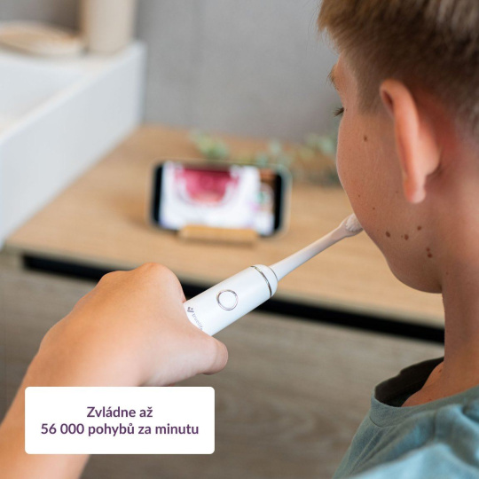 Kartáček nabízí 3 režimy čištění, od pomalého pro menší děti, po rychlejší pro starší děti, které si zuby čistí kompletně samy a zvládají techniku.
