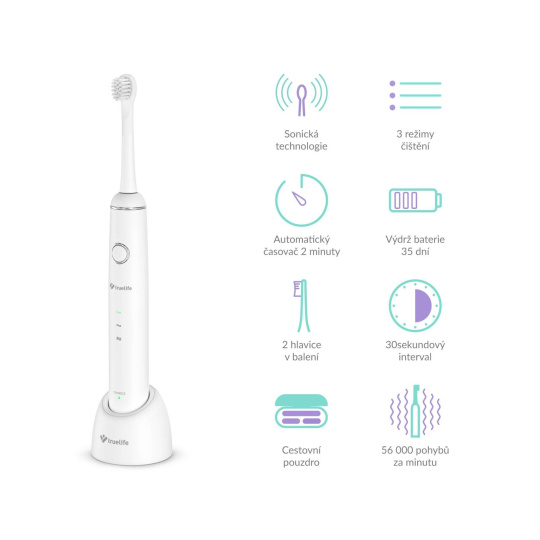 Sonický kartáček TrueLife je svou velikostí i jemností štětin perfektně vhodný pro čištění dětských zubů. Kartáček padne dětem skvěle do ruky a čištění je pro ně snadné. Nabízí 3 režimy čištění – od pomalého pro menší děti po rychlejší pro starší děti, kteří si zuby čistí kompletně samy a zvládají techniku. O správnou délku čištění se postará automatický časovač, takže už nemusíte hlídat za dveřmi.