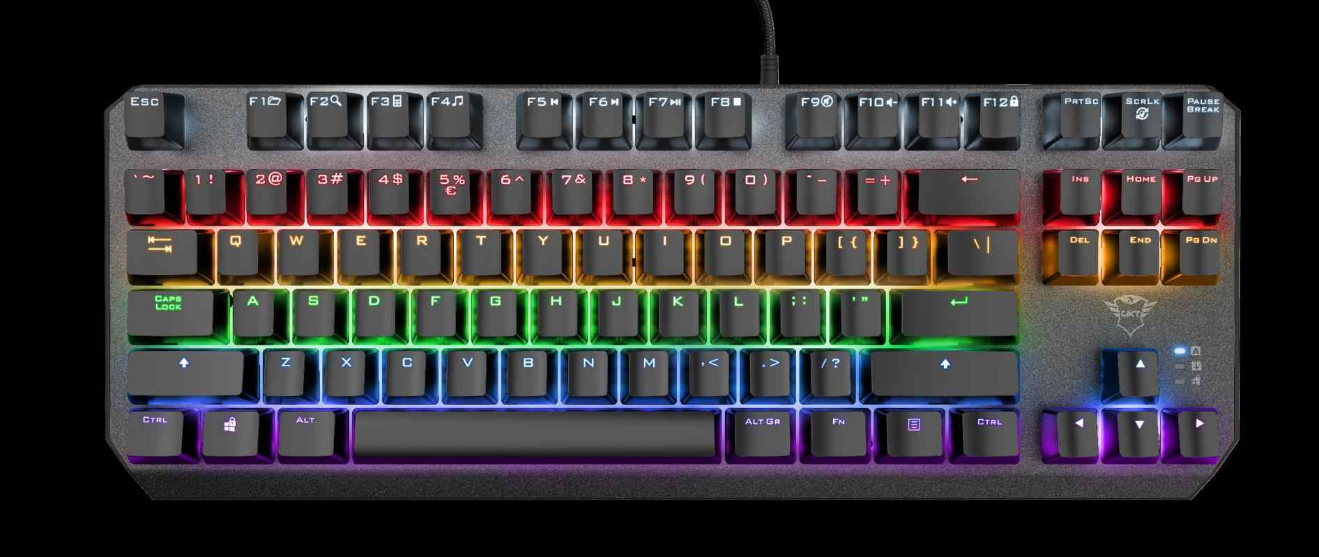 Kompaktní, tenkeyless herní klávesnice s mechanickými spínači a duhovým osvětlením
