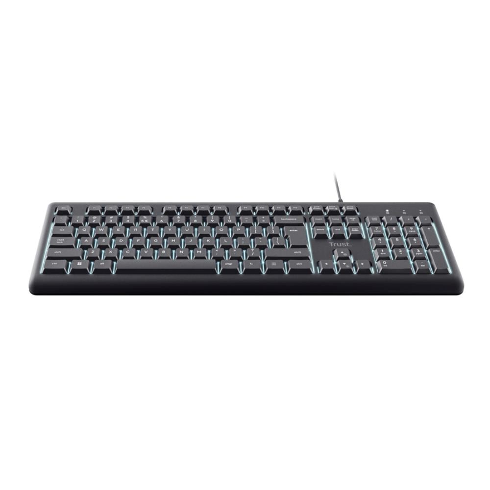 TRUST klávesnice Primo, Membránová, USB-C, Podsvícená, černá