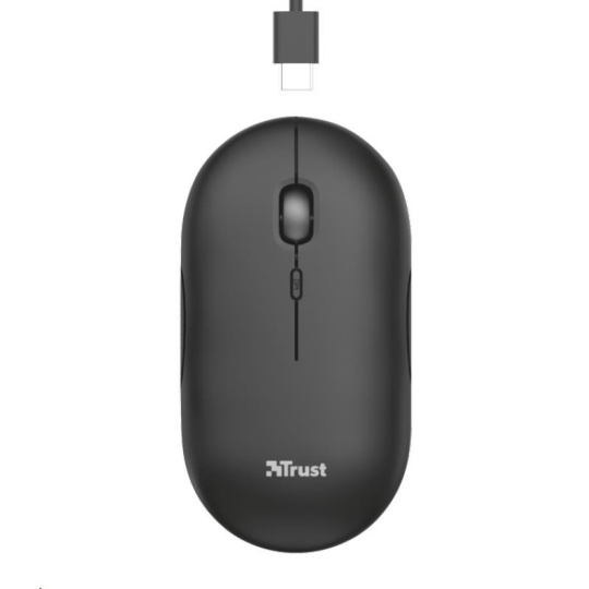 Rechargeable wireless mouse with minimalistic, rounded shape and silent buttons