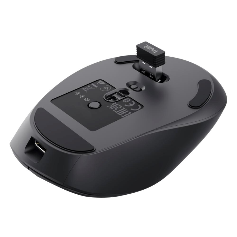 Trust Zevo je moderní bezdrátová myš s ultra-rychlým nabíjením a podporou připojení k více zařízením současně. Nebojíš se už měnit baterie – myš se dobíjí rychle a bez nich funguje dlouho díky interní akumulátoru. Podpora více bezdrátových režimů umožňuje připojit ji přes 2,4 GHz USB přijímač i Bluetooth k počítači, notebooku nebo tabletu a snadno mezi nimi přepínat. Díky tomu je ideální volbou pro každodenní práci či multitasking doma i v práci, a její pohodlný design spolu s kvalitním optickým senzorem zajišťují plynulé ovládání kurzoru bez kompromisů.