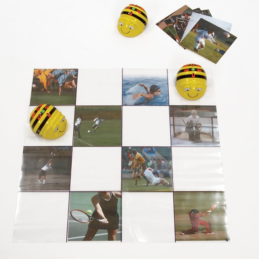 Podložka na hru s Bee-Bot včelkou. Je průhledná a má kapsy, do kterých se mohou vkládat různé karty. Děti si tak mohou vymyslet vlastní pravidla. Je vyrobena z PVC a může se používat i v exteriéru. Rozměr kapsy: 15 x 15 cm Pro děti od 3+ let.